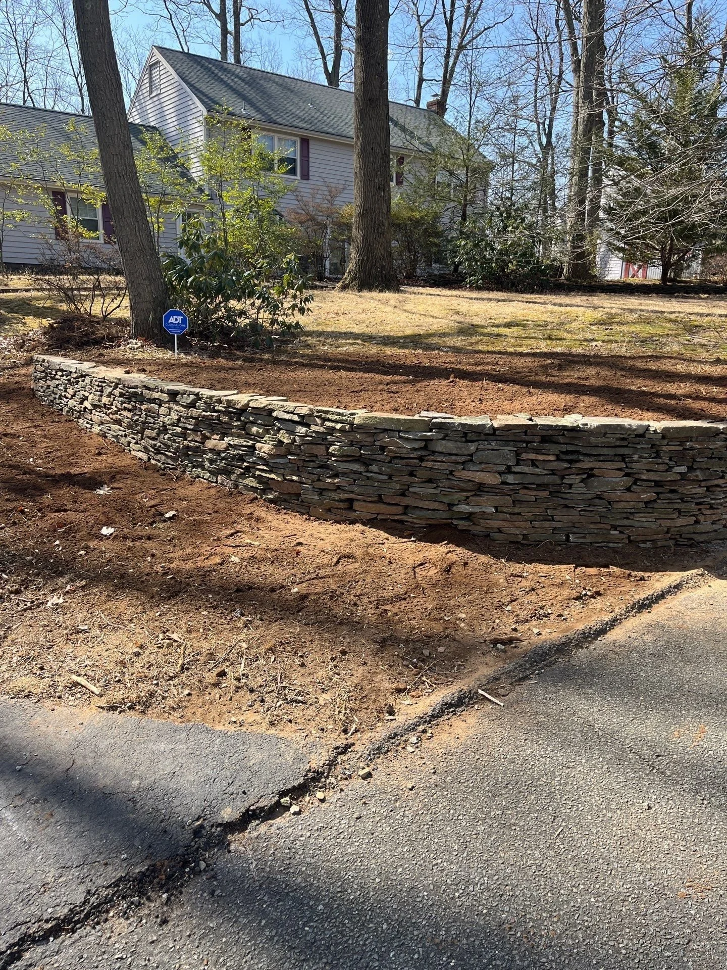 For this project, I was tasked with constructing a new stone wall to enhance both the functionality and aesthetic appeal of the client’s property. The existing stone wall was deteriorating, leading to an uneven landscape and compromised curb appeal. My goal was to rebuild a sturdy, well-structured stone wall that would not only offer stability but also elevate the overall look of the outdoor space.